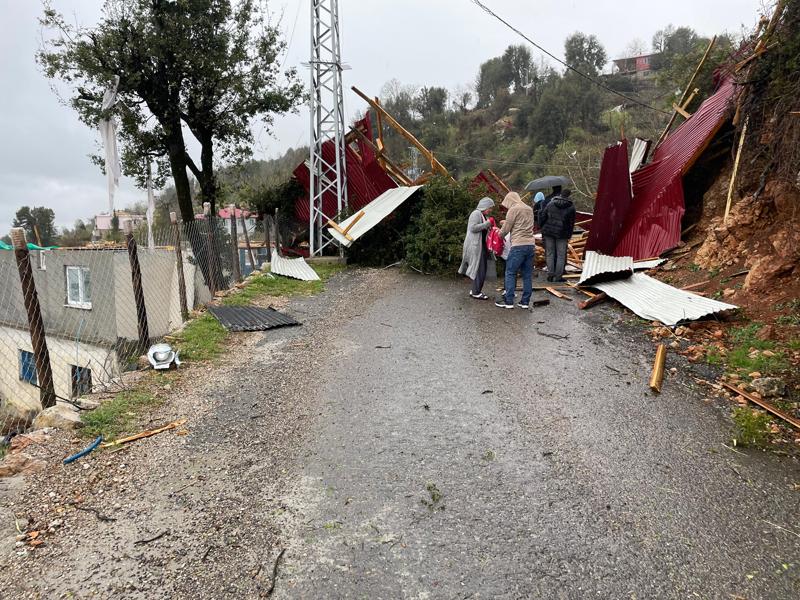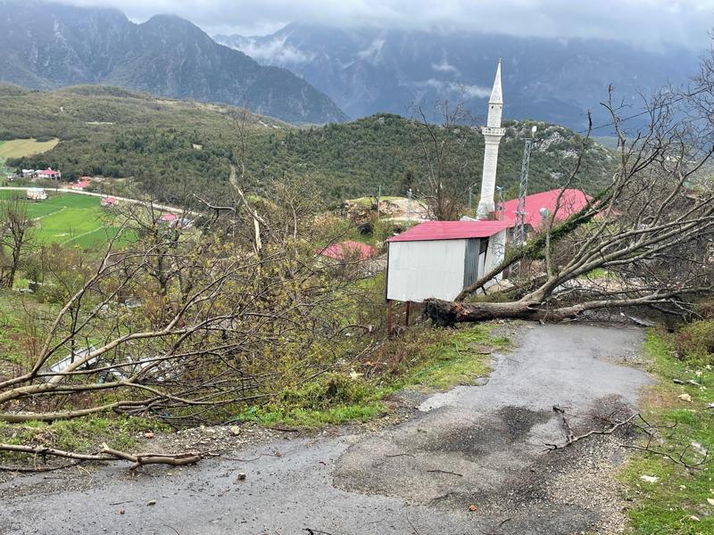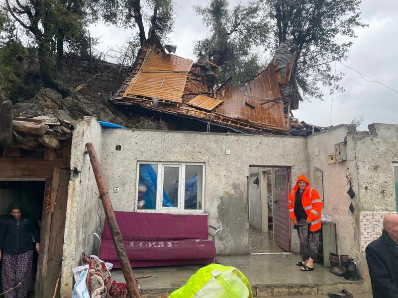 Boğazören Mahallesi Senir mevkisinde fırtına nedeniyle 3 evin çatısı uçtu, çok sayıda ağaç devrildi.
