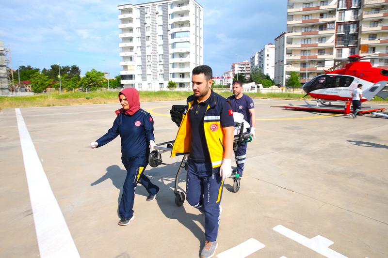 Burada yapılan ilk müdahalenin ardından ileri tedavi için ambulans helikopter istendi.