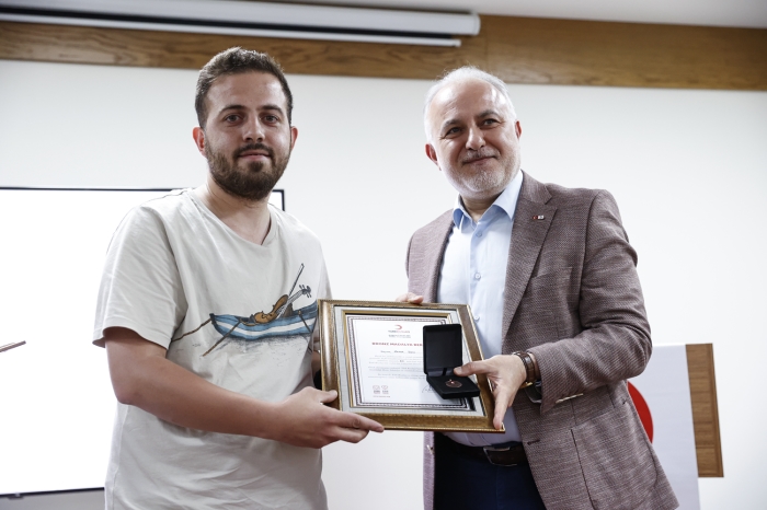 Kan bağışçısı Zafer Şen'e törende eşlik eden babası Turgay Şen, kendisinin de altın madalyalı bir bağışçı olduğunu dile getirdi.