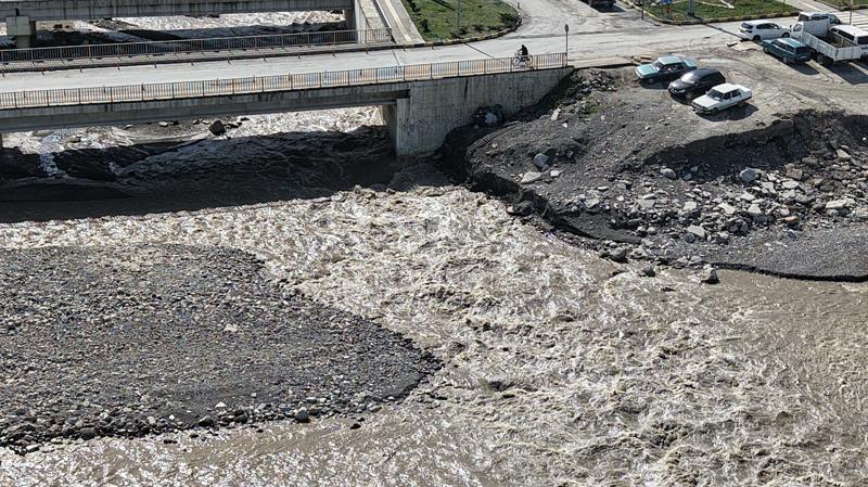 İlçenin yüksek kesimlerinde iki hafta önceki kar yağışının ardından 2,5 metreye ulaşan kar, sıcak havanın etkisiyle erimeye başladı. Eriyen karın suları derelere aktı.