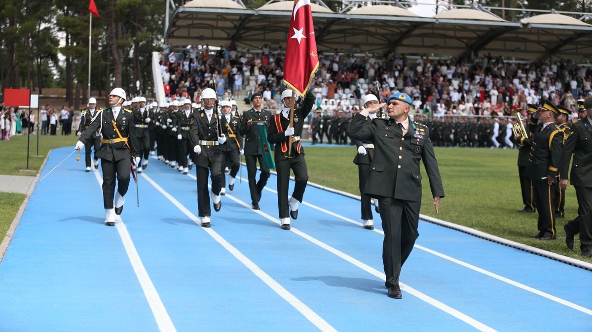 Kara Kuvvetleri Komutanı Orgeneral Selçuk Bayraktaroğlu, dönem birincisi Ulaştırma Astsubay Çavuş Arif Çetintürk'ün yaş kütüğüne plaket çakmasının ardından yaptığı konuşmada, öğrencileri başarılarından dolayı kutladı.