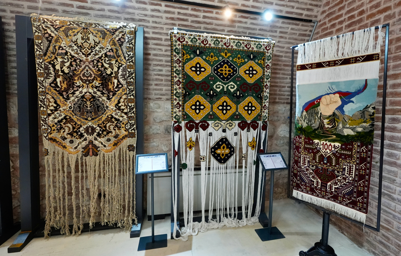 Karabağ'ın zengin kültürünü yansıtan el dokuması halıların yer aldığı sergi, 1 Ocak'a kadar ziyaret edilebilecek.