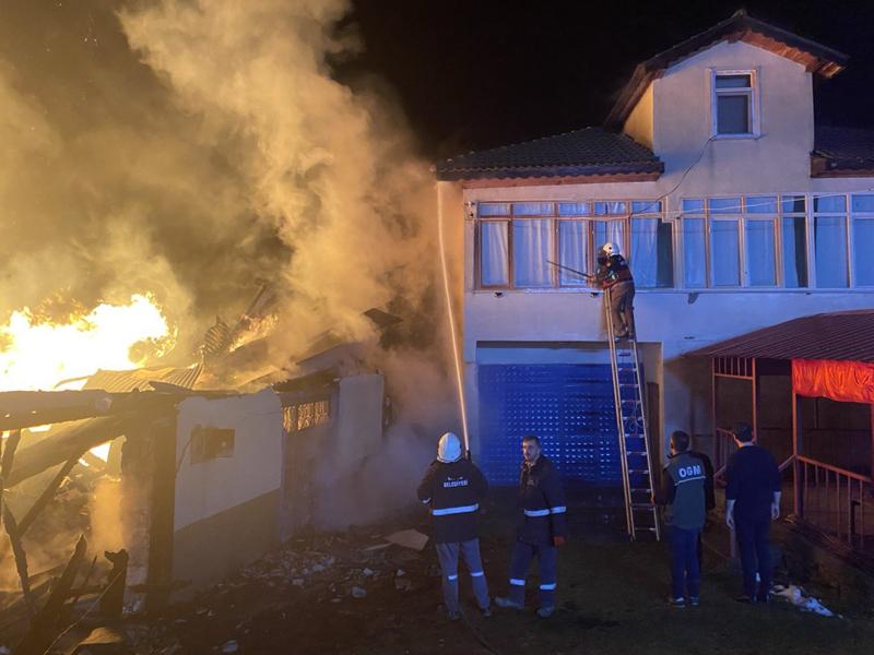 Yangın, itfaiye ekiplerinin yaklaşık 2 saatlik çalışmasıyla çevredeki binalara sıçramadan söndürüldü.