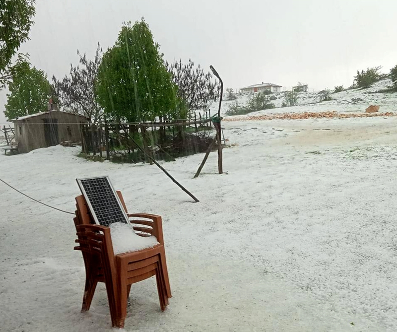 Eflani ilçesinde öğleden sonra başlayan sağanak, yerini doluya bıraktı. Yağış sonucu Bakırcılar ile Çamyurt köylerinde yollar ve tarlalarda beyaz örtü oluştu.