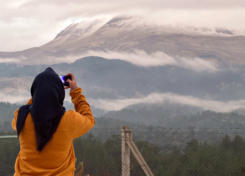 Sabah, Akdağ'ın beyaza bürünen görüntüsüyle karşılaşan mahalle sakinleri, güzel görüntüyü cep telefonları ile kaydetti.