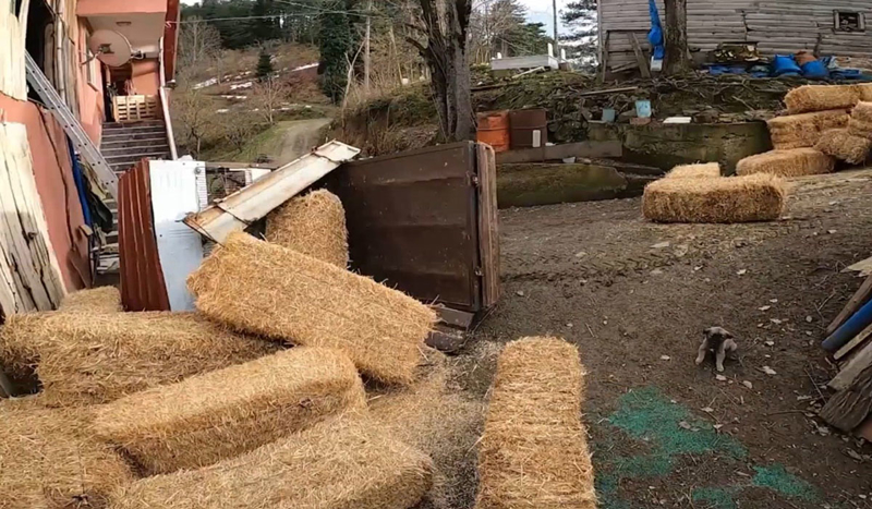 Kafa kamerası görüntülerinde patpat ile seyir halinde olan Fatih Kıyoğlu'nun aracı, saman balyalarını taşımaya çalıştığı sırada devriliyor.