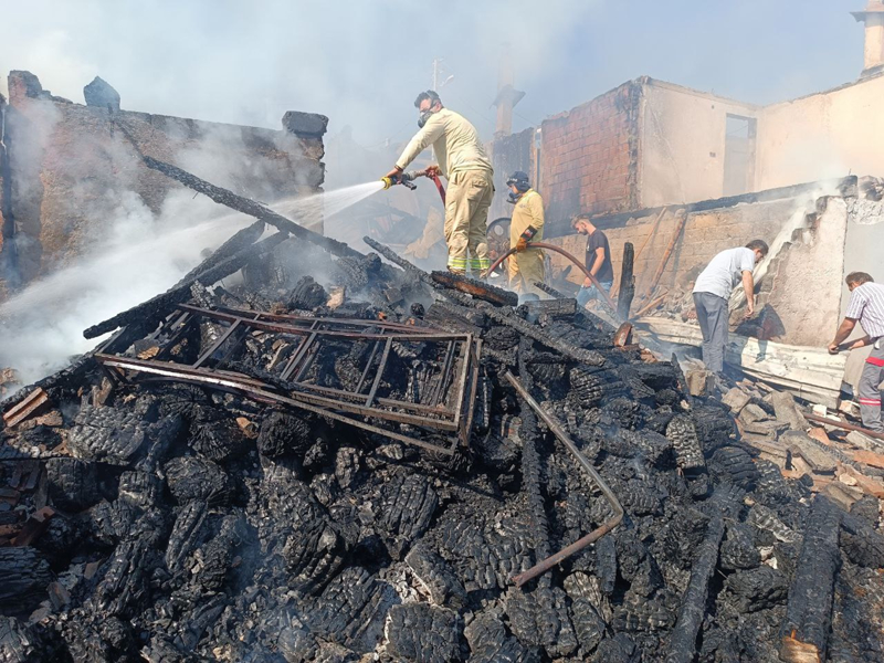 Kontrol altına alınan yangında üç ev tamamen yandı.