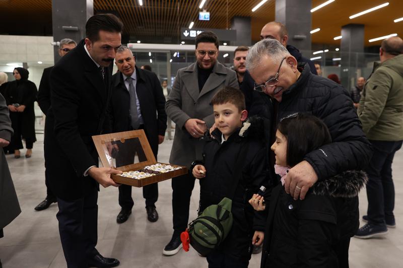 Büyükkılıç, terminal binasına gelen ilk yolculara çikolata ikram etti.