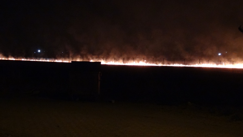 Çatışmaya ilişkin güvenlik kaynaklarından yapılan açıklamada ise "Hudutun Suriye tarafında bir çatışmadan seken bir roket mayınlı araziye düşmüş ve yangın oluşmuştur. Birliklerimizin herhangi bir dahli yoktur. Karşılık da verildiği doğru değildir" ifadeleri kullanıldı.