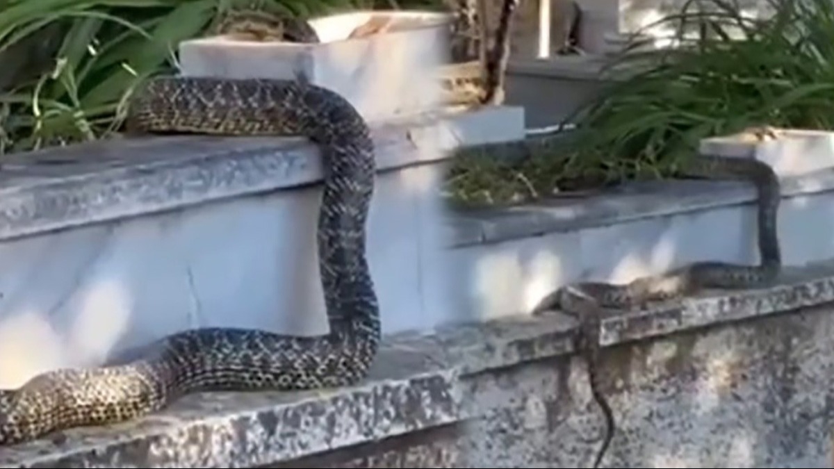 Mezarlığa ziyarete giden bir vatandaşın cep telefonu kamerasıyla çektiği yılan, görenleri hayrete düşürdü. Büyüklüğüyle tedirginliğe yol açan yılanın görüntüleri, sosyal medyada çok kez paylaşım aldı.