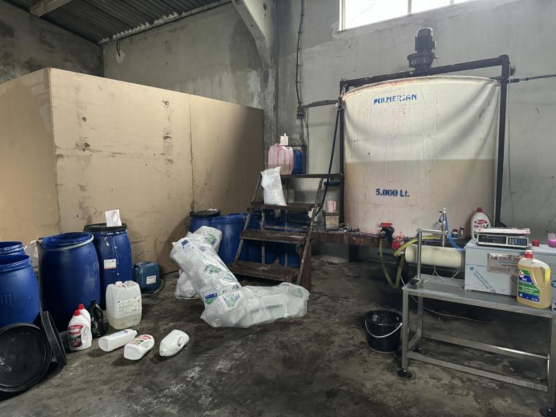 İl Jandarma Komutanlığı Kaçakçılık ve Organize Suçlarla Mücadele Şubesi ekipleri, Karahıdır Mahallesi'nde bir depoda sahte temizlik malzemesi üretildiğini tespit etti.