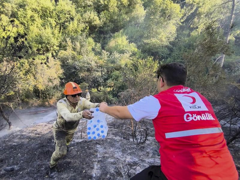 Yangınla mücadele eden ekipleri ve yangından etkilenen vatandaşları yalnız bırakmayan Türk Kızılay, olası yangınlara karşı teyakkuz halinde çalışmayı sürdürüyor.