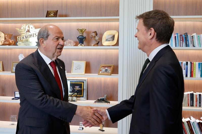 Kuzey Kıbrıs Türk Cumhuriyeti (KKTC) Cumhurbaşkanı Tatar, Birleşmiş Milletler (BM) Genel Sekreteri Antonio Guterres'in Kıbrıs Özel Temsilcisi ve Kıbrıs'taki BM Barış Gücü (UNFICYP) Misyon Şefi Colin Stewart'ı kabul etti.