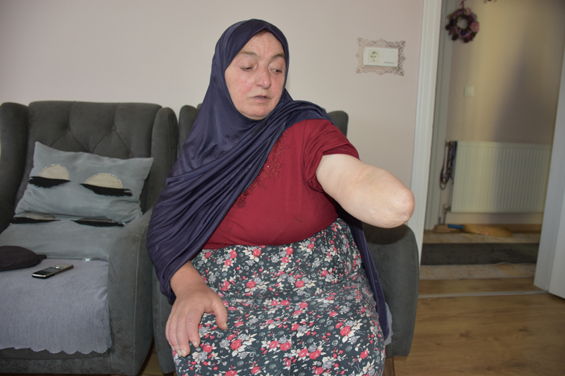 Onlara yalvardım yardım etmelerini istedim. Beni hastaneye götürdüler 10 gün yoğun bakımda kaldıktan sonra normal servise çıktım ve uzun bir tedavi sürecim oldu. Kolumu kurtarmak için bütün doktorların seferber olduğunu gördüm ancak kangren oldu ve kalan az bir kısmı da kesmek zorunda kaldılar.''