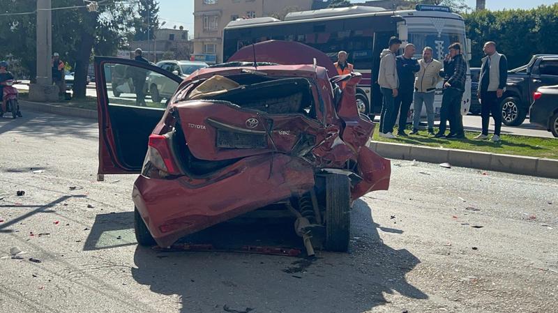 Döşeme Mahallesi Mehmet Nuri Sabuncu Bulvarı'nda, sürücülerinin isimleri öğrenilemeyen 01 AUT 646 plakalı cip, kırmızı ışıkta bekleyen 01 PB 877 plakalı otomobile çarptı. Cip, daha sonra sürücüsünün direksiyon hakimiyetini kaybetmesiyle yol kenarındaki aydınlatma direğine çarparak durabildi. Cipin çarptığı 01 PB 877 plakalı otomobil de yanındaki 01 DIM 92 plakalı araca vurdu.