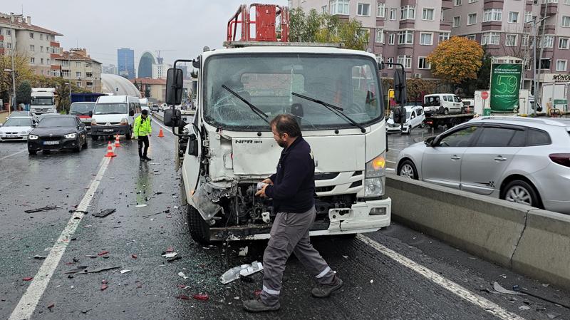 Halkalı Merkez Mahallesi Gümrük Yolu Caddesi'nde, 3 panelvan ile kamyonetin karıştığı zincirleme trafik kazası meydana geldi.