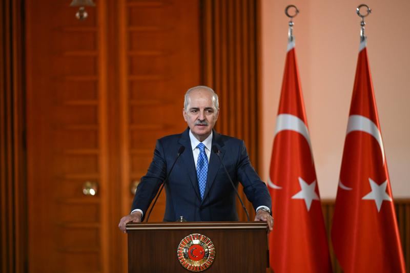 Meclis Tören Salonu'nda Irak Temsilciler Meclisi Başkanı Mahmud Meşhedani ile ortak basın toplantısı düzenleyen TBMM Başkanı Numan Kurtulmuş, Leman Dergisi'nde yayınlanan karikatüre tepki gösterdi. TBMM Başkanı, "Bu saldırıyı yapan şerefsizleri, bunların arkasında duranları da şiddetle kınıyorum" dedi.