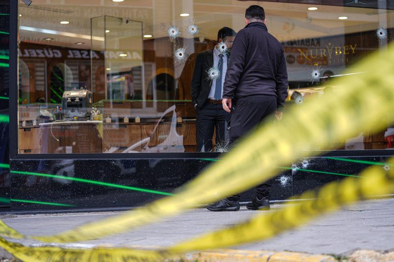 Kuyumcudaki çalışanlar ve müşteriler, siper alarak mermilerden korunmaya çalıştı.