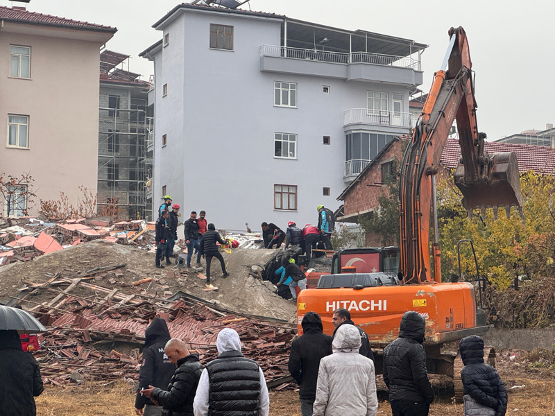 Yıkım sırasında henüz bilinmeyen nedenle bina iş makinesinin üzerine devrildi.