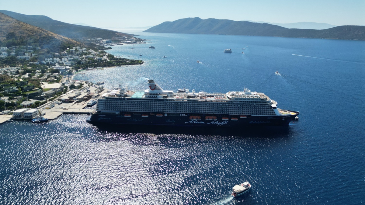 Girit Limanı'nın ardından rotasını Bodrum'a çeviren 295 metre uzunluğundaki yolcu gemisi, Bodrum Cruise Port iskelesine yanaştırıldı.