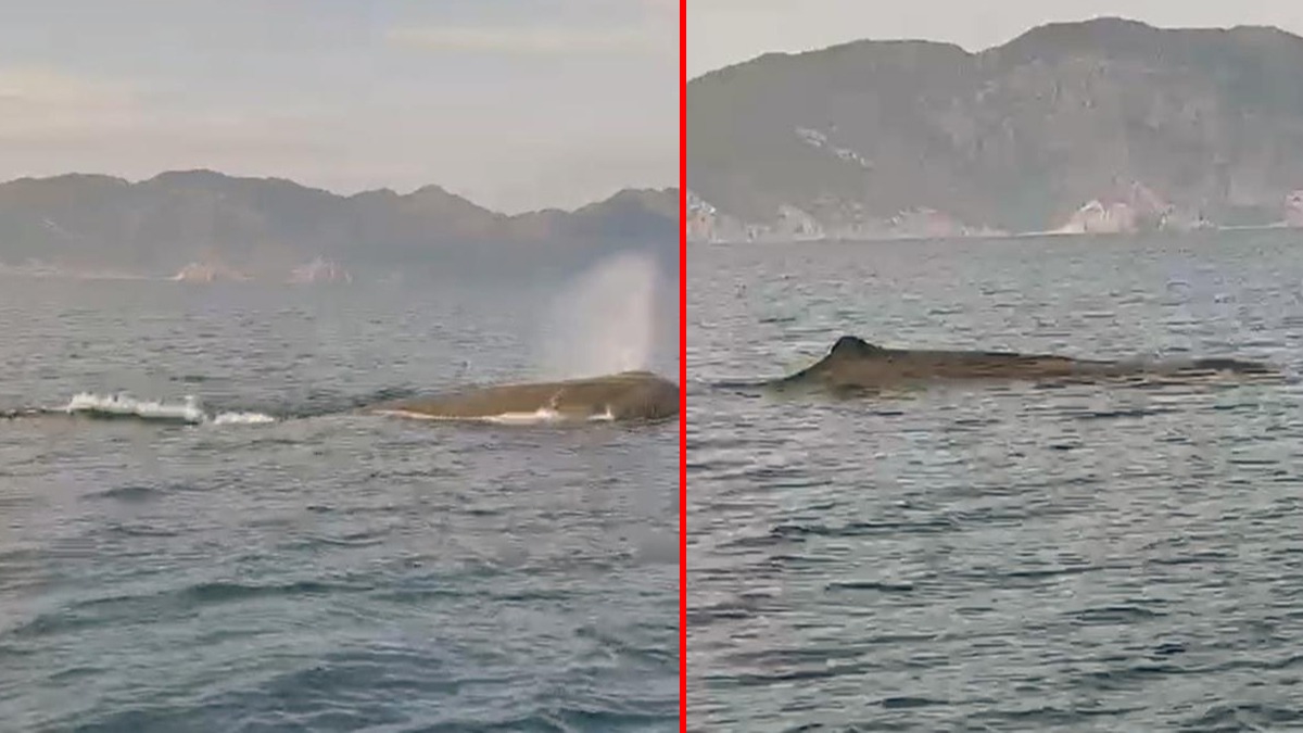 Küçük bir gezi teknesinde seyreden vatandaşlar aniden su yüzüne çıkan balina ile şaşkınlıklarını gizleyemedi. İlk şaşkınlığını atlatan vatandaşlar bu anı cep telefonları ile kaydetti. Tek başına yüzdüğü görülen balina zaman zaman su püskürterek gözlerden uzaklaştı.