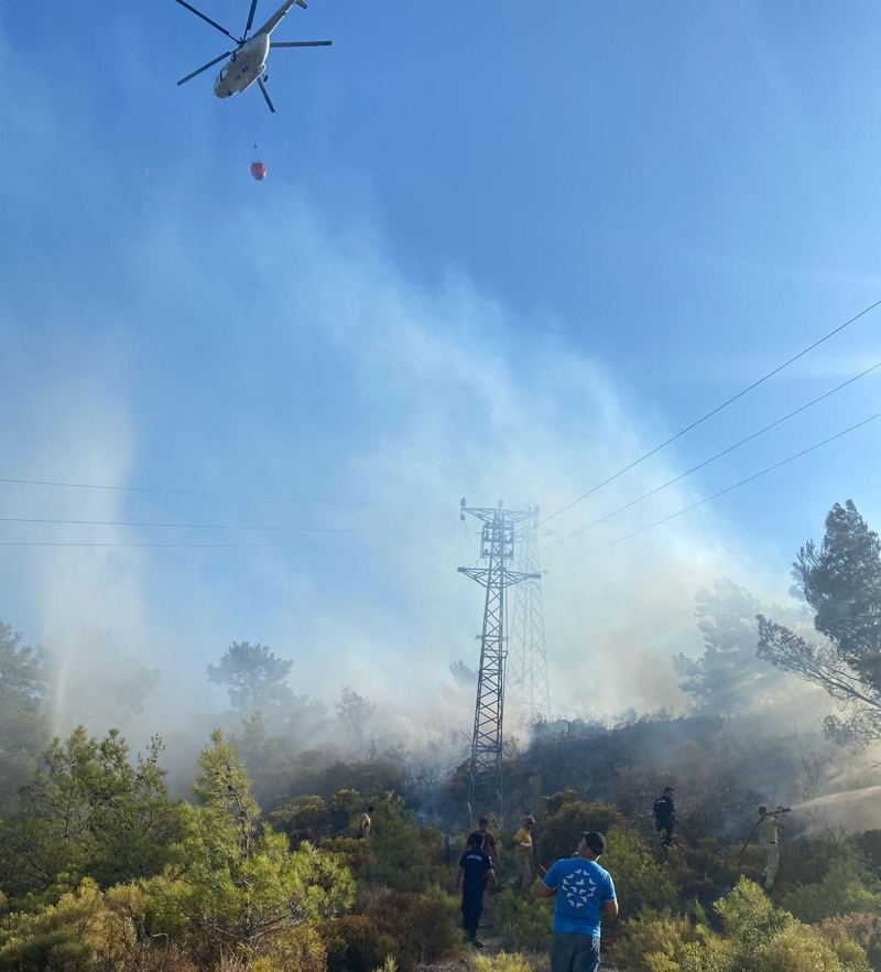Enerji nakil hattından çıktığı tahmin edilen yangına havadan ve karadan etkili şekilde müdahale edildi.