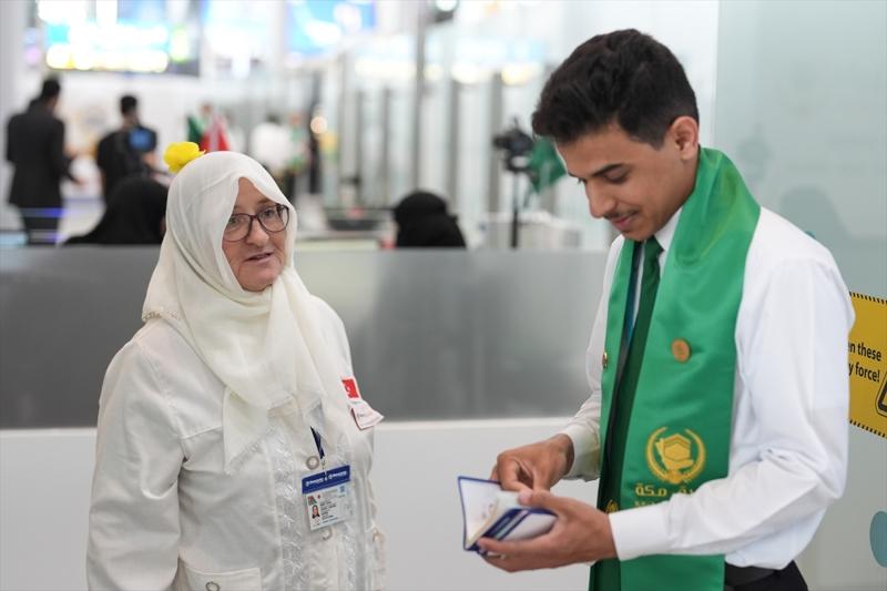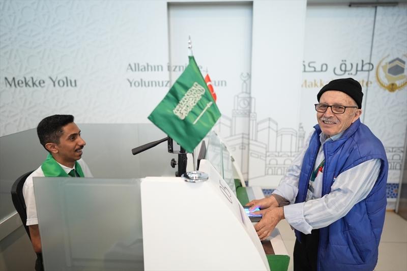 Suudi Arabistan'da yapılacak pasaport kontrolü ile parmak izi gibi işlemleri İstanbul Havalimanı'nda tamamlanan ve görevlilerce kendilerine gül hediye edilen hacı adayları, Cidde veya Medine'deki havalimanlarında beklemeden kalacakları otellere geçebiliyor.