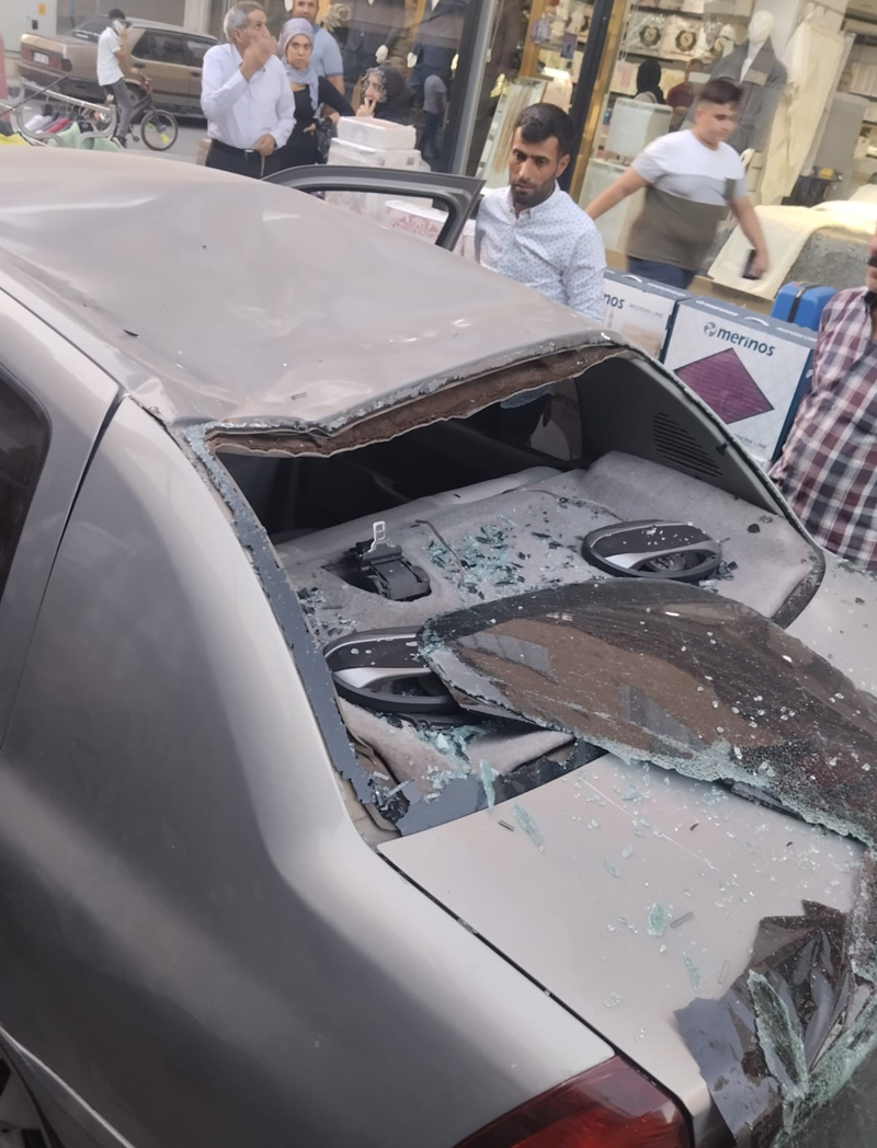 Aracın hasar gördüğü olay anı, iş yerinin güvenlik kamerasınca kaydedildi.