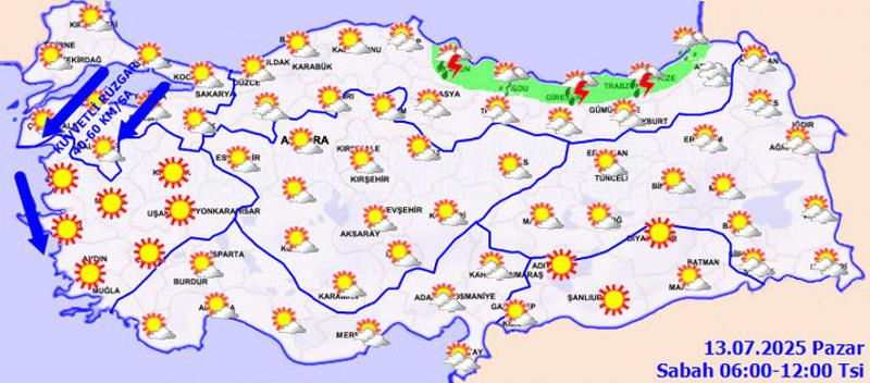 GÖK GÜRÜLTÜLÜ SAĞANAK YAĞIŞLITürkiye'nin kuzey kesimlerinin parçalı, yer yer çok bulutlu, Orta ve Doğu Karadeniz kıyıları ile Artvin çevrelerinin yerel olmak üzere sağanak ve gök gürültülü sağanak yağışlı, diğer yerlerin az bulutlu ve açık geçeceği tahmin ediliyor.