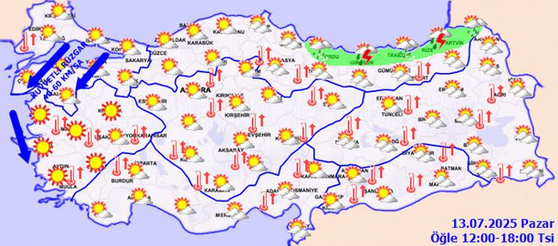KAVURUCU SICAKLARYapılan açıklamada, şiddetli rüzgar nedeniyle ulaşımda aksamalar gibi yaşanabilecek olumsuzluklara karşı dikkatli ve tedbirli olunması istendi.