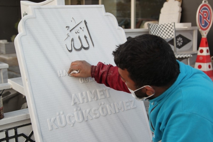 Mezar taşı ustasından dikkat çeken mesaj: Maske takmadığınız için teşekkür ederiz