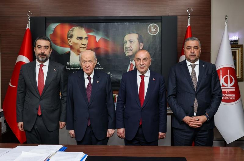 Ardından Bahçeli, Turgut Altınok'un daveti üzerine belediyeye geçerek başkanlık makamında ağırlandı. Bahçeli'nin burada kendisinin makama oturmayarak, Altınok ve hem AK Parti hem de MHP il başkanlarını makama oturtması da dikkatlerden kaçmadı. Altınok'un Bahçeli'ye "Efendim" şeklindeki hitabı, duruşu ve mütavazi tutumu ise takdir topladı.