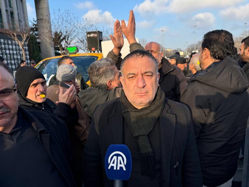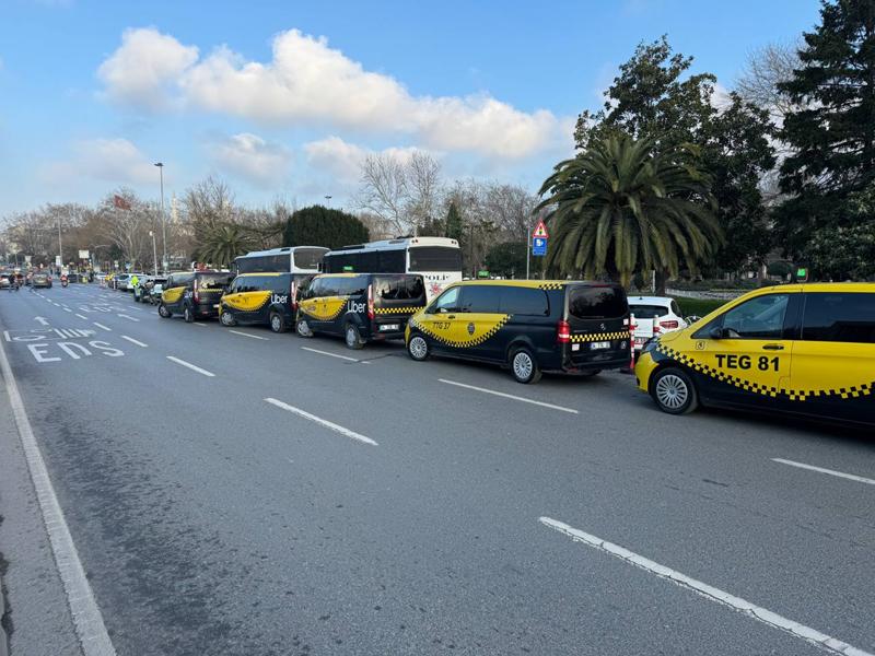 Kendilerine "8+1 Taksi Mağdurları Platformu" adını veren grup üyeleri, taksileriyle konvoy halinde Saraçhane'deki İBB binası önüne geldi.