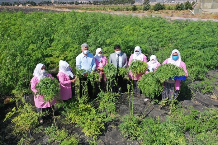 Bu durumun kendilerini mutlu ettiğini anlatan Kütüz, "Çok iyi geri dönüşler aldık. Kullanıp da tekrar ayağa kalktıklarını, daha zinde hissettiklerini söylediler. Bu yıl 25 dönüm arazide moringa bitkisi üretimi yaptık. 30 tona yakın yaş rekolte bekliyoruz." dedi.