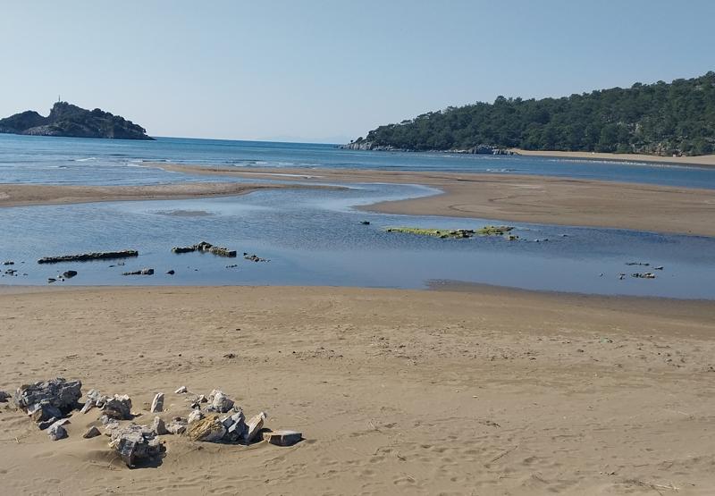Plajın Boğazağzı mevkisinde yaklaşık 60 yıl önce kullanılan gümrük binasının taş temel duvarları suların çekilmesiyle yüzüne çıktı.