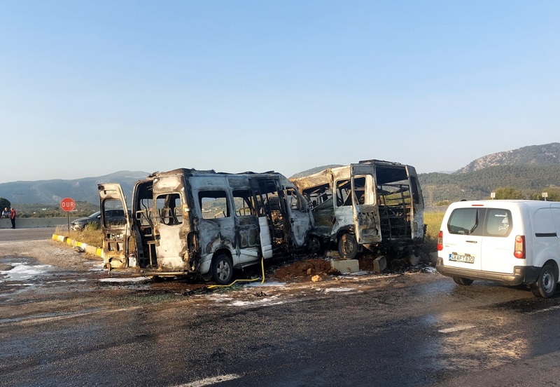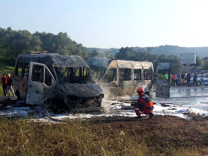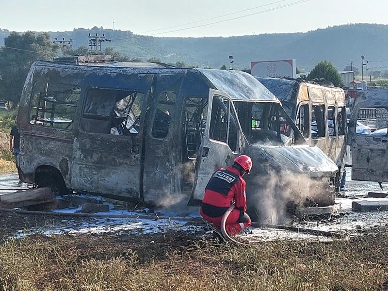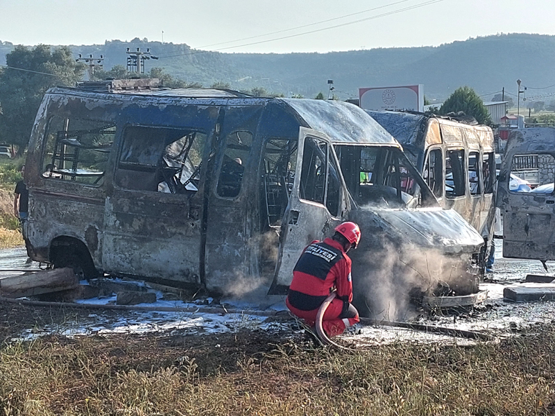 Kazanın ardından araçlar alev alarak yanmaya başladı. Yangın, Muğla Büyükşehir Belediyesine bağlı Milas İtfaiye Grup Amirliği ekipleri tarafından güçlükle söndürüldü.