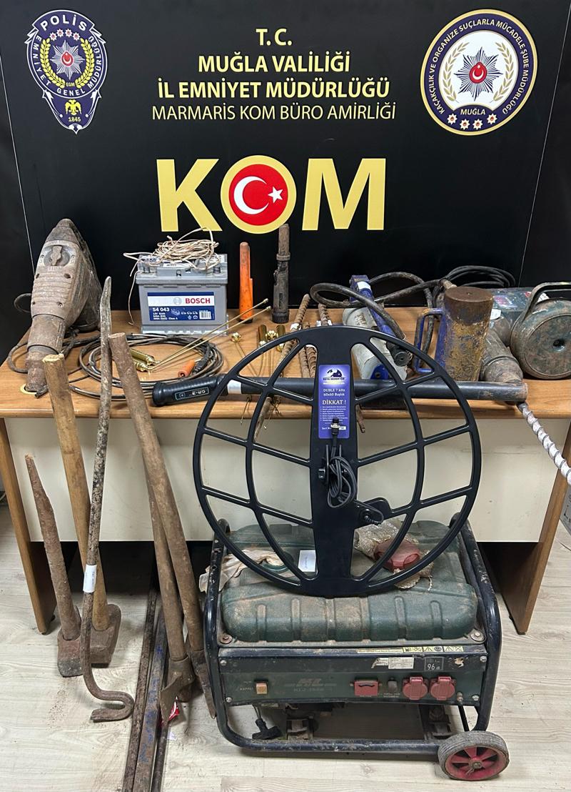 Bölgeye giden ekipler, H.A, A.E. ve H.K'yi kazı yaparken suçüstü yakaladı. Kazı alanında ve şüphelilerin ikametlerinde yapılan aramada metal arama dedektörü, patlayıcı düzenek, jeneratör, akü ve çeşitli kazı malzemeleri ele geçirildi.