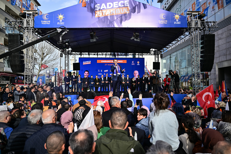 "İstanbul'un gücü her şeye yeter. Ama sen bu gücü İstanbul için kullanırsan, harcarsan, emek verirsen. Ama sen bu gücü rant olarak görüp, orada kapalı kapılar arkasında burayı herkese peşkeş çekmeye kalkarsan olmaz, İstanbul o zaman üzülür. Bu millet kendini unutanlara, kaybolan yıllarının hesabını inşallah 3 gün sonra soracak. Sandık milletin mahkemesidir. Sandık günü hesap günüdür. 31 Mart gelecek, sandık gelecek, hesap kesilecek."