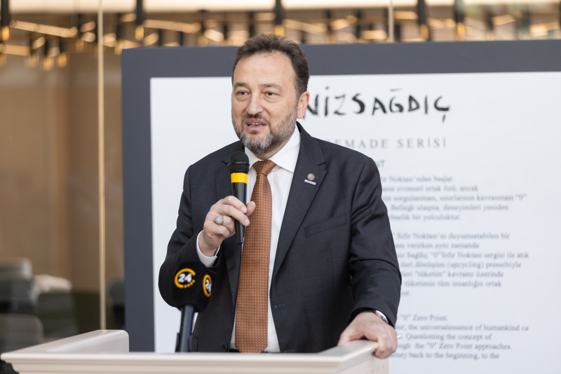 Etkinlikte konuşan MÜSİAD Genel Başkanı Mahmut Asmalı, "MÜSİAD'ın 34. yıl kapsamında düzenlediğimiz bu etkinlikte çok değerli sanatçımız Deniz Sağdıç'ın eserlerini sanatseverlerle buluşturmaktan memnuniyet duyuyoruz. Biz MÜSİAD olarak, sürdürülebilirliğin işletmeler ve dünyadaki kaynakların etkin kullanımı için en önemli konulardan biri olduğunu sık sık vurgulamaktayız. MÜSİAD olarak sorumluluğumuzu yerine getirmek, farkındalık oluşturmak ve insanlara bu farkındalık ile sanat bilinci aşılamak, estetik algılarını geliştirmek amacıyla bu anlamlı sergiye aracılık etmekteyiz" dedi.