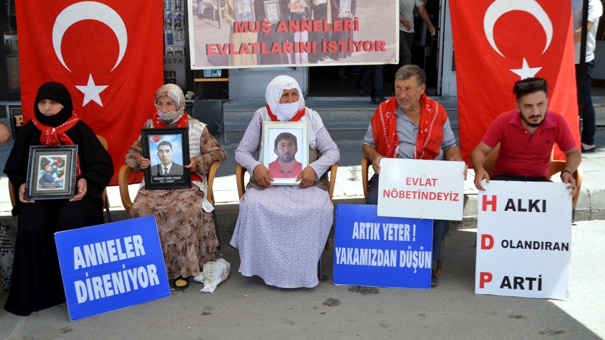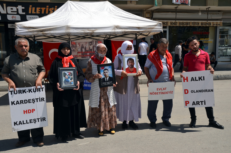 "Evlat nöbetindeyiz", "Anneler direniyor" ve "Artık yeter yakamızdan düşün" yazılı pankartlar açan anne ve babalar, fotoğraflarını taşıdıkları çocuklarına teslim olmaları için çağrıda bulundu.