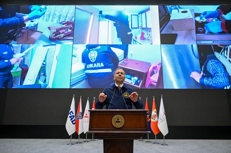 Bakan Yerlikaya, İçişleri Bakanlığı'ndaki Güvenlik ve Acil Durumlar Koordinasyon Merkezi'nde (GAMER), Narkokapan-Ankara Operasyonu'na ilişkin açıklamalarda bulundu.