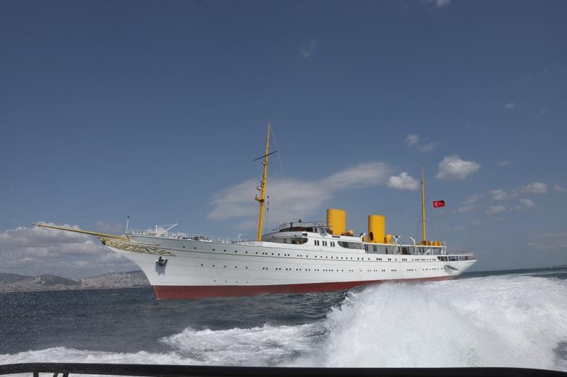 Deniz Kuvvetleri Komutanı Oramiral Ercüment Tatlıoğlu, Mustafa Kemal Atatürk'ün "manevi mirası" olarak bilinen ve aslına uygun restore edilen Savarona'da incelemelerde bulundu.