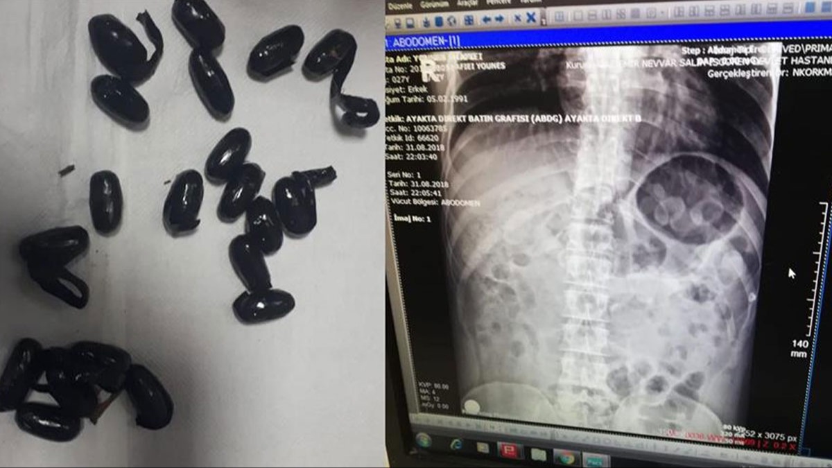 Hastaneye götürülerek muayene ve tomografi çekimleri yapılan şüphelilerin mide ve bağırsaklarında çok sayıda yabancı cisim bulunduğu tespit edildi.