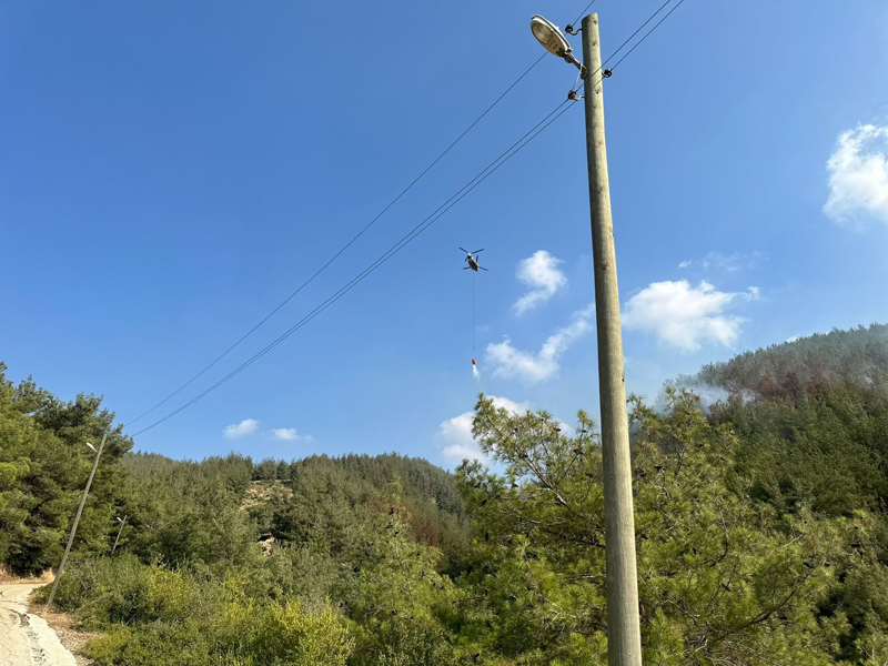 İhbar üzerine bölgeye Orman İşletme Müdürlüğüne bağlı söndürme helikopteri, arazöz ve ekip yönlendirildi.