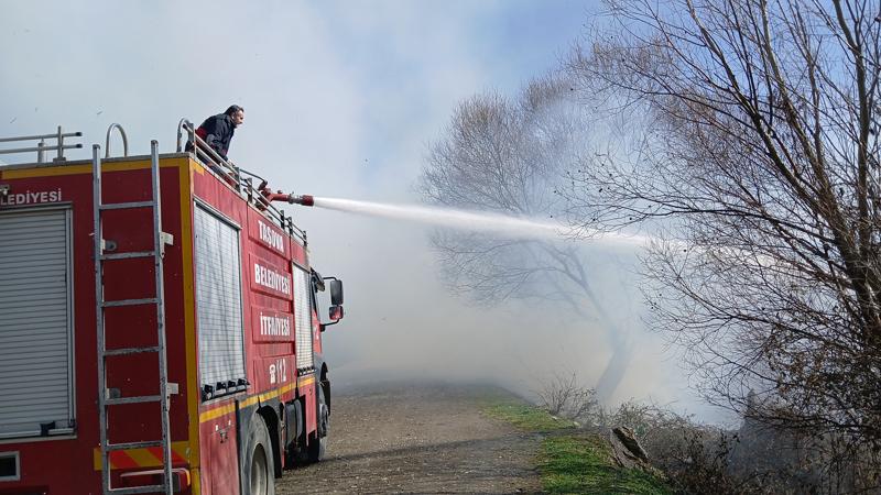 Yangın, itfaiye ekipleri ve iş makinelerinin müdahalesiyle söndürüldü.