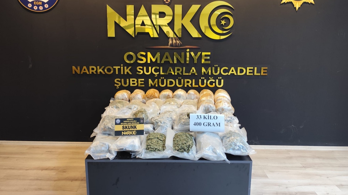 Narkotik detektör köpeği yardımıyla yapılan aramada, aracın bagajında 33 kilo 400 gram sentetik uyuşturucu ele geçirildi, 2 şüpheli gözaltına alındı.