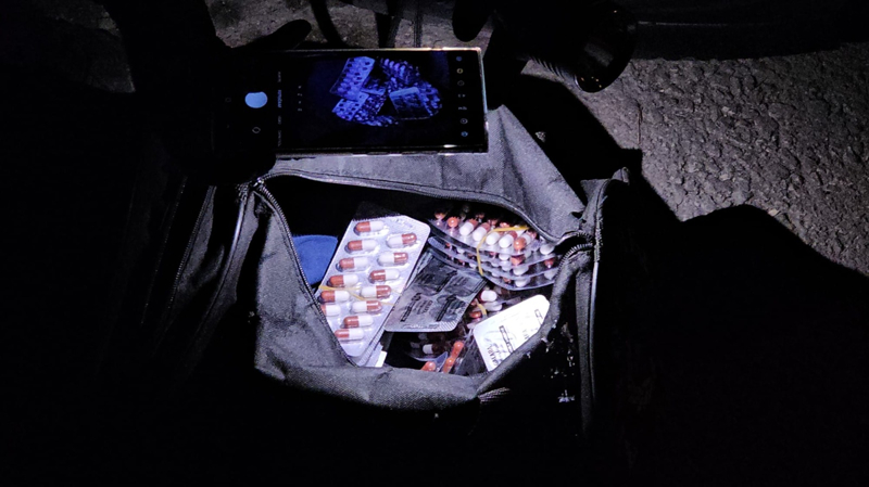 Ekiplerce yapılan incelemede, otomobilin motor bölümündeki boşluklara bir çanta içerisinde gizlenmiş yüzlerce uyuşturucu hap bulundu.