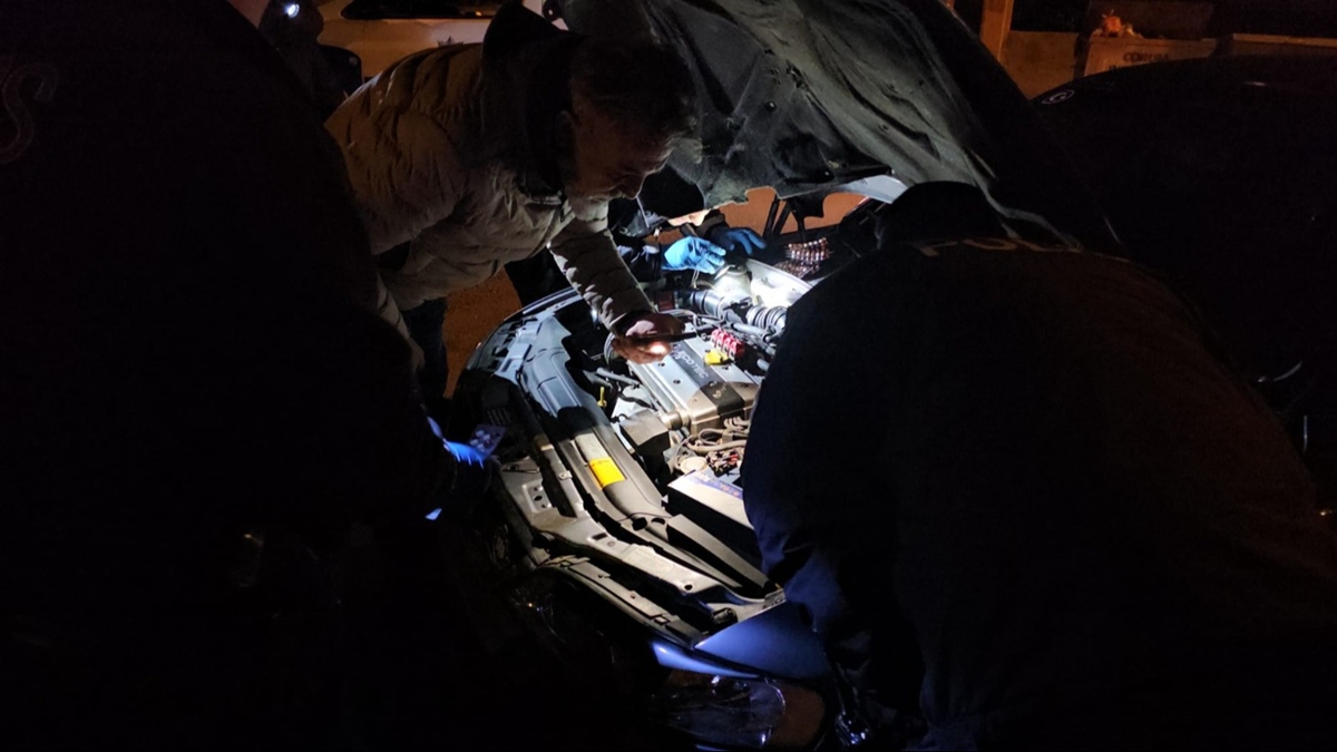 Mimar Sinan Mahallesi'nde devriye görevi yürüten Asayiş Şube Müdürlüğü ekipleri, motor kaputu açık otomobilin etrafındaki 4 kişiden şüphelendi.
