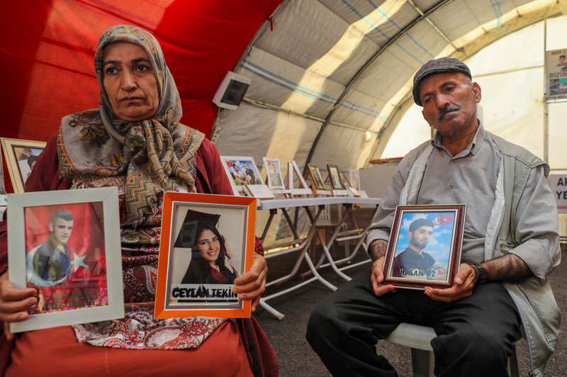 "Hava sıcaklığı 50 derecede bile olsa bizim için fark etmiyor. Yaz kış demeden çocuklarımız için burada nöbet tutuyoruz. HDP, DEM Parti fark etmiyor, bunlar Kürtlerin düşmanıdır. 9-13 yaşlarındaki çocukları dağlara götürüp ölüme terk ettiler. Tüm çocuklara sesleniyorum, gelin devletinize teslim olun. Devletimiz güçlüdür. Anne ve babalar olarak her gün ağlamaktan bıktık. Artık gözlerimizden yaş gelmiyor."