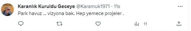 Karanlık Kuruldu Geceye isimli bir diğer bot hesapta, "Park, havuz vizyona bak. Hep yemece projeler." diyerek Yavaş'ı kurtarmaya çalıştı.